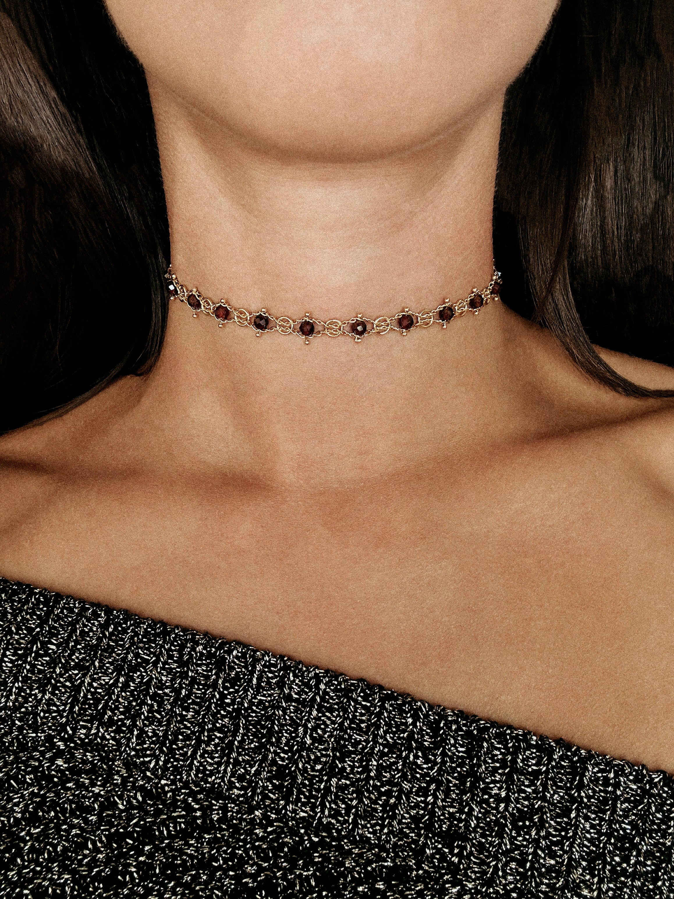 Choker Fino Dorado con Cristales Rojos – Elegancia Minimalista
